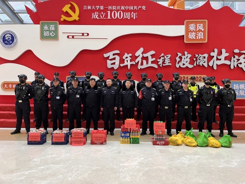 在吉林大學(xué)第三醫(yī)院,慰問組對所有堅守崗位的保安員們送上春節(jié)的慰問和敬意。于總認(rèn)真聽取了駐勤保安隊(duì)長對崗點(diǎn)春節(jié)期間人員配備、應(yīng)急預(yù)案等具體工作的情況匯報。于總強(qiáng)調(diào),春節(jié)期間,醫(yī)護(hù)工作者依然堅守在工作崗位上,守護(hù)著人民群眾的生命健康與安全,我們更要做到毫不放松、嚴(yán)之再嚴(yán)、細(xì)之再細(xì),與醫(yī)院攜手并肩,以銅墻鐵壁之堅保障醫(yī)院平安。